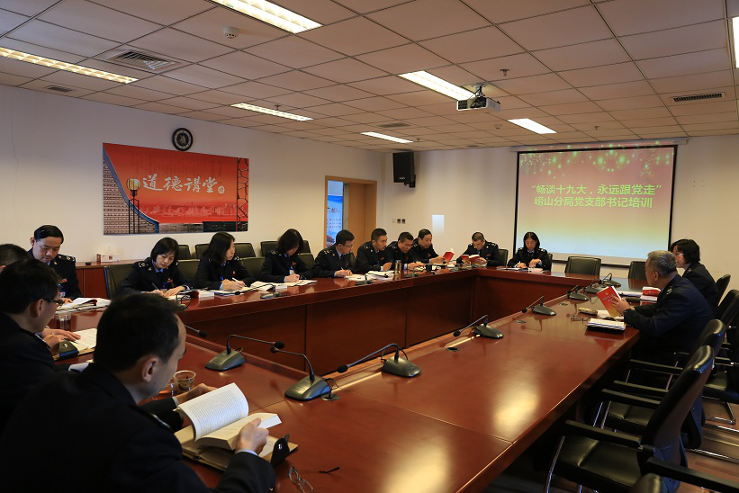 为深入学习宣传贯彻党的十九大精神,坚定自觉地用习近平新时代中国特色社会主义思想统一党员干部群众的思想和行动。近日,崂山分局开展“畅谈十九大,永远跟党走”党支部书记培训会。